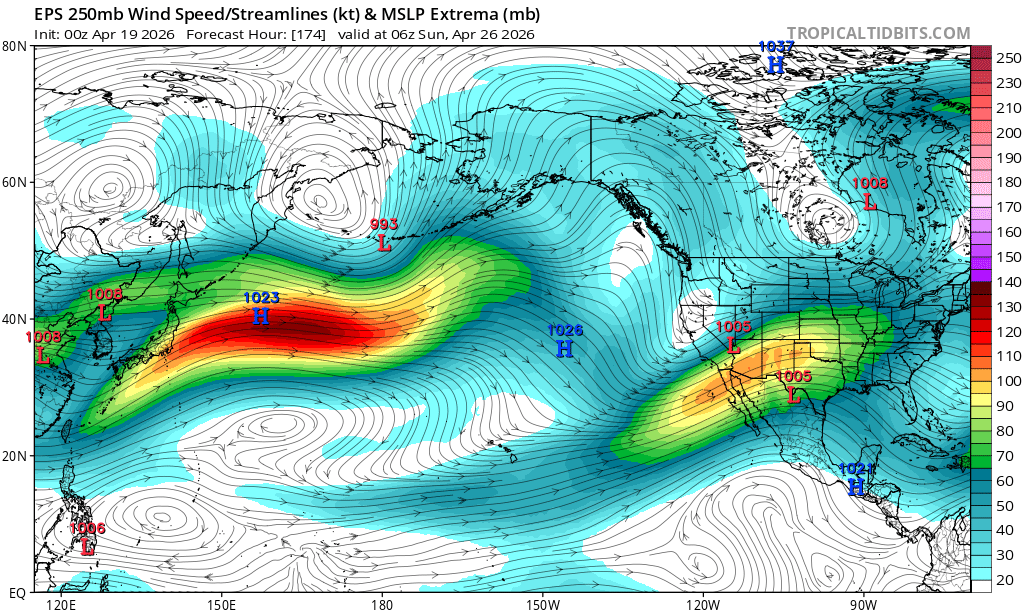 There has been a remarkable divergence between the individual operational runs of both the GFS and ECMWF and their respective ensembles in recent days, with the ensembles much more strongly emphasizing continued persistent ridging and heat across much of the West. But the operational runs have been suggesting that this ridge may shift eastward and be undercut by a highly anomalous (for mid-June) active Pacific jet–perhaps even bringing some June rainfall to the West Coast.