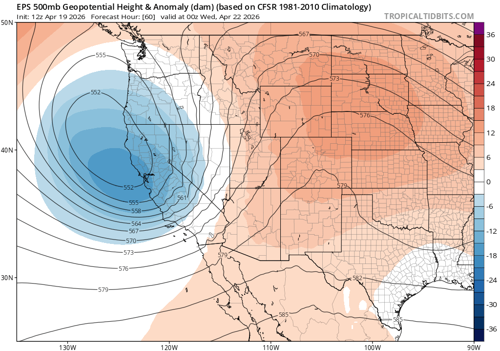 How hot will it actually get in California? Well, the most anomalous heat will almost certainly occur away from the coast and probably across northern and eastern California. This means that most spots in the coastal SF Bay Area and coastal SoCal won’t get much more than “moderately warm” (and the immediate shoreline could remain under the cool influence of the marine layer!), but portions of the CA northern interior could actually break early season heat records. There may be a few days of very hot conditions for early June across the Sacramento Valley toward the middle of next week, but there will likely be a longer period of elevated heat across the northern mountains and Sierra Nevada eastward. So places like Shasta and Reno/Tahoe could be very (record?) hot by June standards, while San Francisco remains on the chilly side and places in between see a range of heat extremity. This will also represent the first major heat event the SE CA desert interior, though it’s less likely the heat there will be record-breaking as it sometimes does get quite hot there even in early June.
