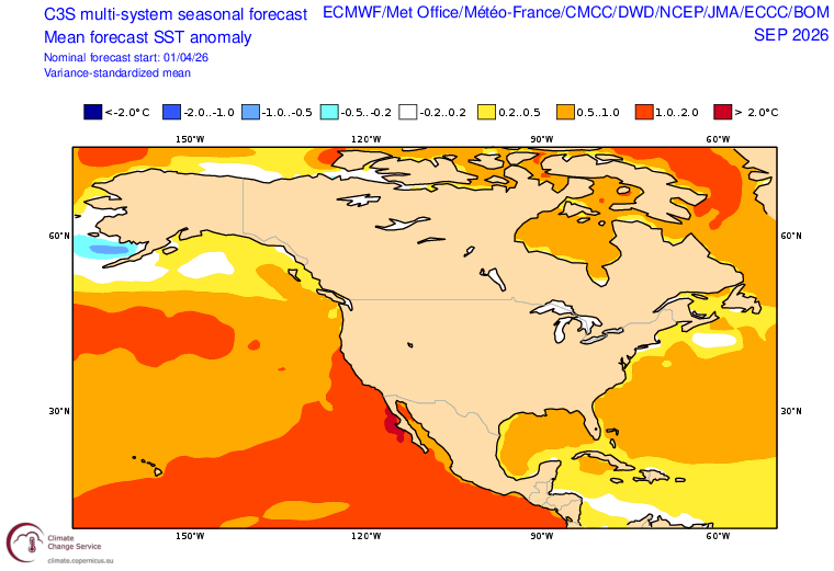 There is high confidence that a major, widespread, and prolonged heatwave will develop across much of the interior Western United States and parts of western Canada by Jun 5-8 as a broad ridge of high pressure builds over the region. This likely means temperatures will be well above early-mid June levels across much of the region for a 10-14 day period, and could be record-breaking at times at least locally. There is still a pretty wide of potential outcomes, from “moderately hot” to “all time monthly June records,” depending on where you are and exactly how the pattern evolves. It does appear the region within 50-100 miles of the Pacific Coast is least likely to experience major heat with this upcoming pattern–partly because near-shore temperatures are so cool (cooler than average, even), and that will keep nature’s air conditioning going strong in all but the most extreme outlying ensemble member predictions. But there is also the potential for some inland regions that rarely see severe or prolonged early season heatwaves to experience one in the coming days, and this could bring substantial impacts. By Jun 10 or so, there may be a very large region of exceptionally warm temperatures extending all the way from central Mexico (where ongoing record heat is already having severe consequences) to western Canada (where already severe drought has yielded yet another early start to wildfire season).