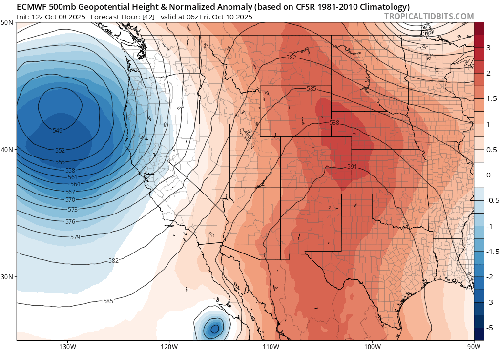 Continuing the theme of “active and unusual” weather California has seen in recent months, another notable period will begin tomorrow across SoCal before shifting toward NorCal by early next week. Over the next 24-48 hours, the remnants of now rapidly-weakening East Pacific Hurricane Priscilla will become entrained into southerly flow ahead of a large offshore low pressure system. This will allow Priscilla’s remnant circulation, along with abundant moisture and instability, to recurve in a northeastward direction over northern Baja California and into the lower deserts of SE CA and S AZ by Friday and Saturday. This will likely generate a fairly substantial swath of moderate to heavy rain over the lower Colorado Basin–the second or third such event in recent weeks. It will also have the potential to generate isolated to scattered, but locally very heavy, shower and thunderstorm downpours in the lower deserts of SE CA and perhaps also the eastern slopes of SoCal mountains. Some additional shower and isolated thunderstorm activity may also occur over coastal SoCal, mainly south of Los Angeles (and including San Diego), though the intensity and northward extent appears limited. There will probably be at least some risk of flash flooding in the lower desert portion of SoCal into the weekend, but especially eastward into Arizona (where some locations could see 2-3+ inches of rainfall).