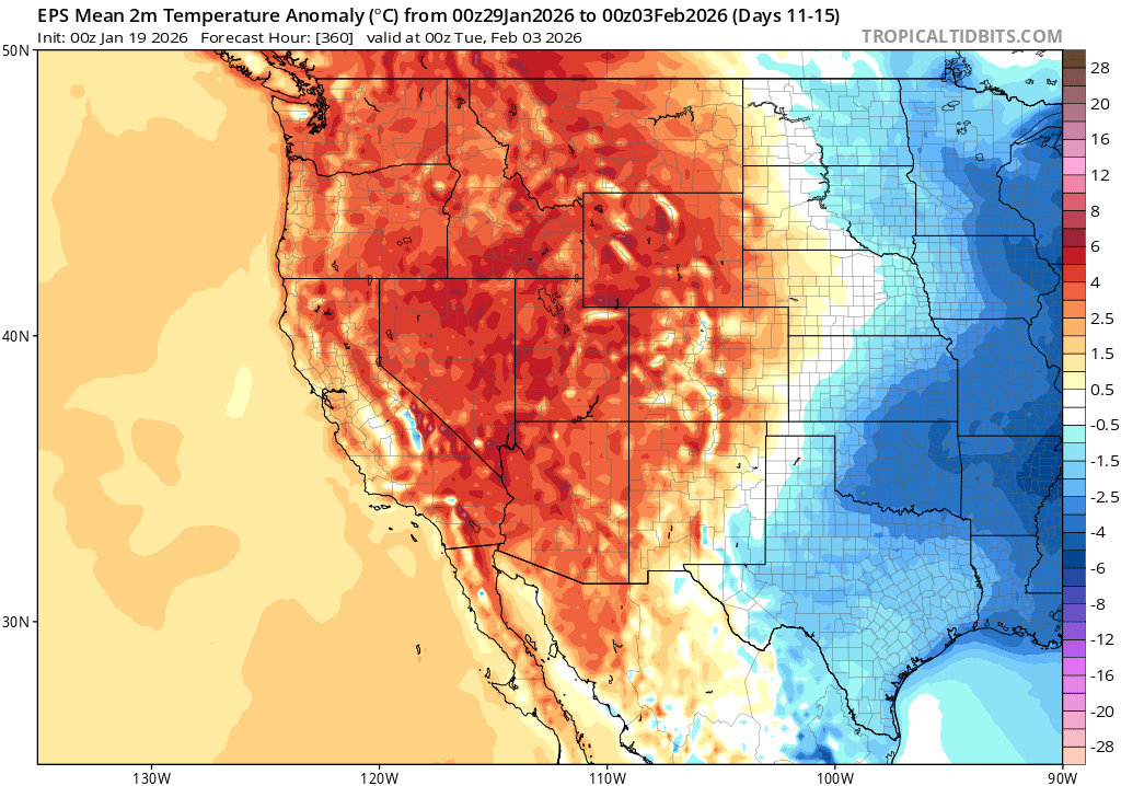 Highly amplified North American pattern leads to “Warm West/Cool East” dipole, with extreme thermal contrasts across CONUS